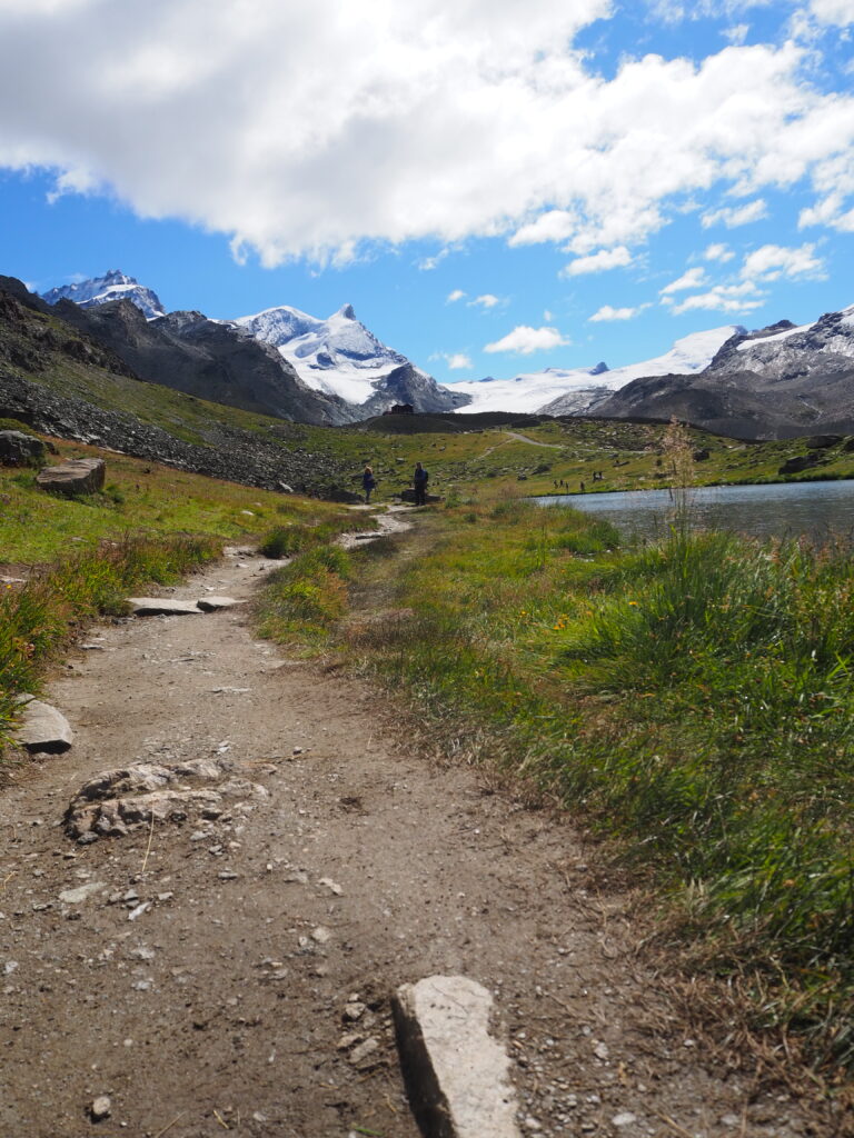 Unser nächstes Abenteuer war die Wanderung auf dem 5-Seenweg. Wir starteten an der Talstation Sunnegga-Rothorn, nahmen die Bahn zum Rothorn und wanderten dann zurück nach Sunnegga. Der Weg führt über den Stellisee, Grindjisee, Grünsee, Moosijsee und Leisee. Besonders beeindruckend: In gleich drei Seen spiegelt sich das Matterhorn – ein unvergesslicher Anblick!