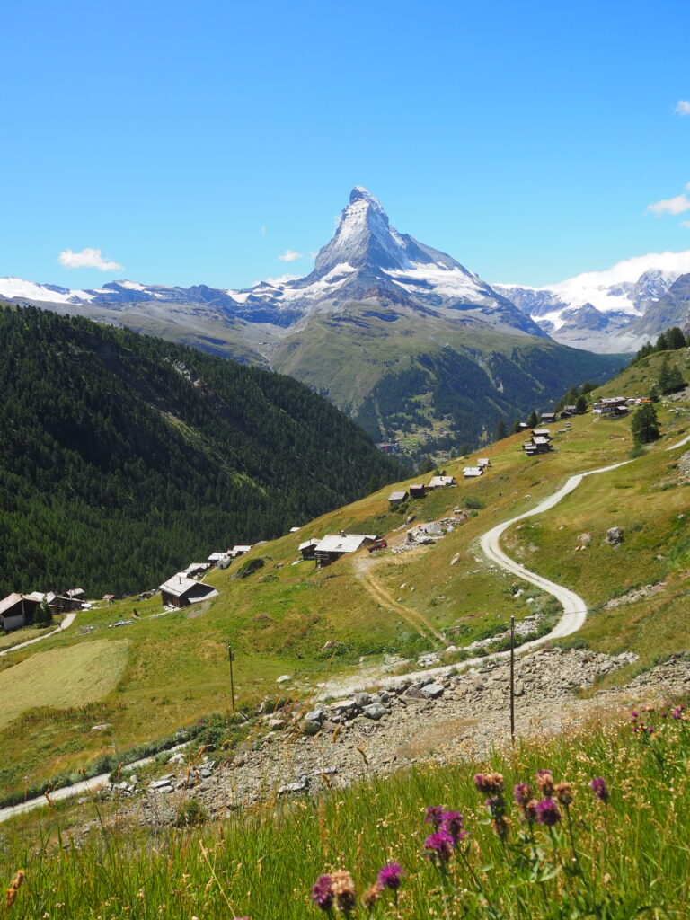 Da Zermatt autofrei ist, fuhren wir früh morgens nach Täsch, wo wir in der Dorfstraße parken konnten. Von dort aus bringt der Zermatt-Shuttle Besucher bequem in die Alpenstadt. Zermatt war für uns das absolute Highlight des Streckenabschnitts 14 – und eines der Highlights unserer gesamten Grand Tour.
