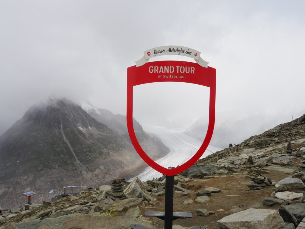 Unser Übernachtungsplatz für Tag neun lag direkt am Bahnhof von Mörel, gegenüber der Talstation zum Aletschgletscher. Das Wetter für Sonntag, den 6. August 2023, hatte Schnee, Wind und niedrige Temperaturen angekündigt – doch die Prognosen lagen glücklicherweise daneben. Perfekt für unseren geplanten Gletschertag auf dem Streckenabschnitt 13 der Grand Tour of Switzerland.