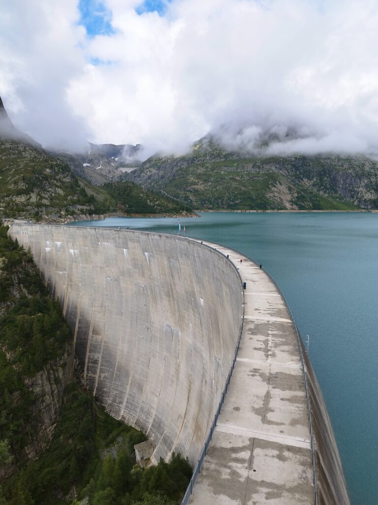 Am nächsten Morgen führte uns die Route weiter Richtung Martigny, doch vorher wartete ein echtes Natur-Highlight: der Lac d’Emosson im Kanton Wallis. Statt die Standseilbahn zu nehmen, sind wir mit unserem Camper direkt bis zum Stausee gefahren – ein Tipp eines Einheimischen. Oben angekommen stellten wir fest, dass hier auch einige andere Camper übernachteten – eine Option, die wir uns für das nächste Mal merken!